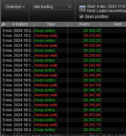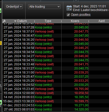 Regarding the latter, this is also about the nasty hot-sauce the 2nd screenshot testifies of. This is a simple system I am trialing, running on its own in an account. So, all easy to track (/ trace) you would say. But it is exactly this why I can see these things happening, which I would never be able to in the midst of another gazillion trades. I-have-no-clue what happens there, and it happens at least once a day. The system does not contain any “Bestens” (= Market) orders, but this happens (watch the times). This is about the (computer-)communication between PRT and IB. This is also about the complexity of synchronisation. I don’t really complain about it, but when not all is covered for in your own program code, out goes your system and in creeps another inconsistency in the database. And btw, would you think their will be any realism in presenting this very issue to PRT to sort it out ? … they would not know where to start. And thus this issue will remain forever, until I find the culprit myself and am able to change something in the program code so it will not happen again.