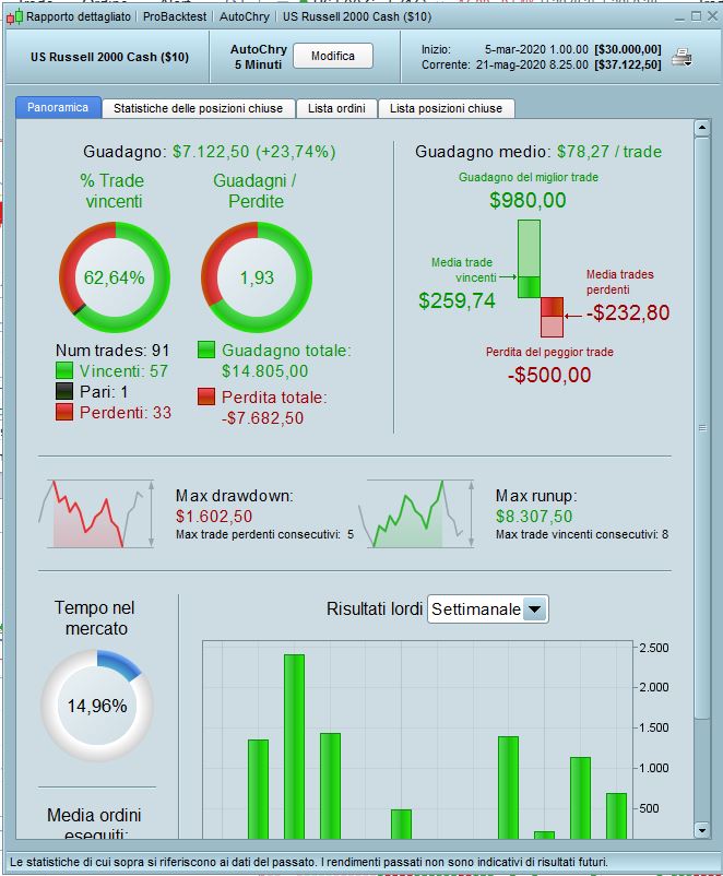 - lo strumento su cui l’hai eseguito [US Russell 2000 Cash ($10)