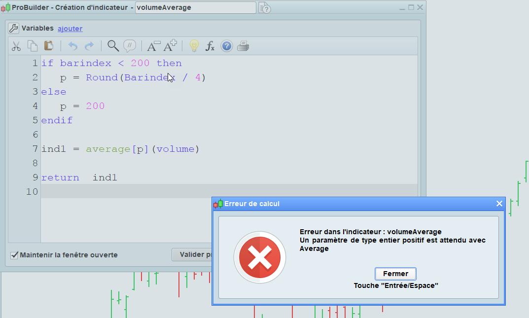 Dommage que je ne comprends pas ce qui a provoqué l’erreur puisqu’elle se produit sur des titres qui ont plusieurs centaines de barres, enfin, je comprendrai peut peut être un jour !