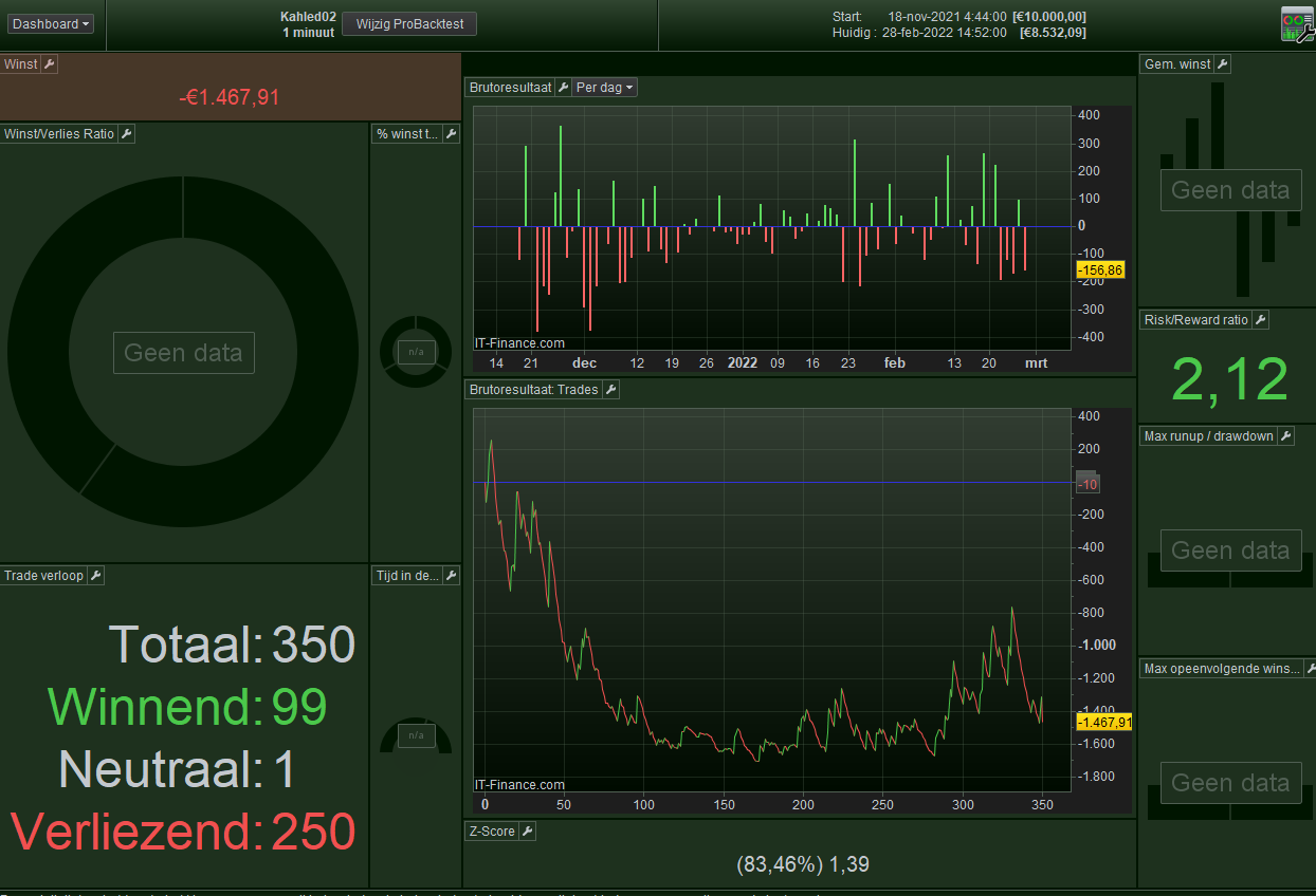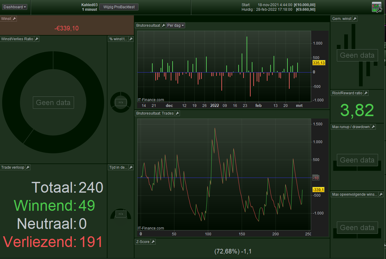 Third and happily, I managed to replace the PP Fractals code by another code from Vonasi called Fractals Average https://www.prorealcode.com/prorealtime-indicators/fractals-average/, where I replaced the two trigger variables with “MidAvg”. I got results not far away and it is live now as we speak. Let’s how it behaves over the afternoon.