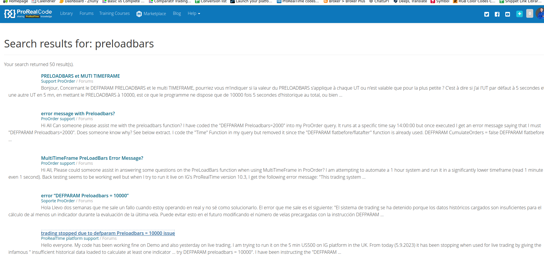 D’autre part, pour certains programmes en 5 mn avec un PRELOADBARS à 10000 (pas de multi Timeframe), j’ai dû encadrer tout le code par IF Barindex >1 … ENDIF, sinon le programme plante au démarrage. Mais pour d’autres ce n’est pas nécessaire. Quelqu’un pourrait-il m’expliquer pourquoi cette instruction est nécessaire ?