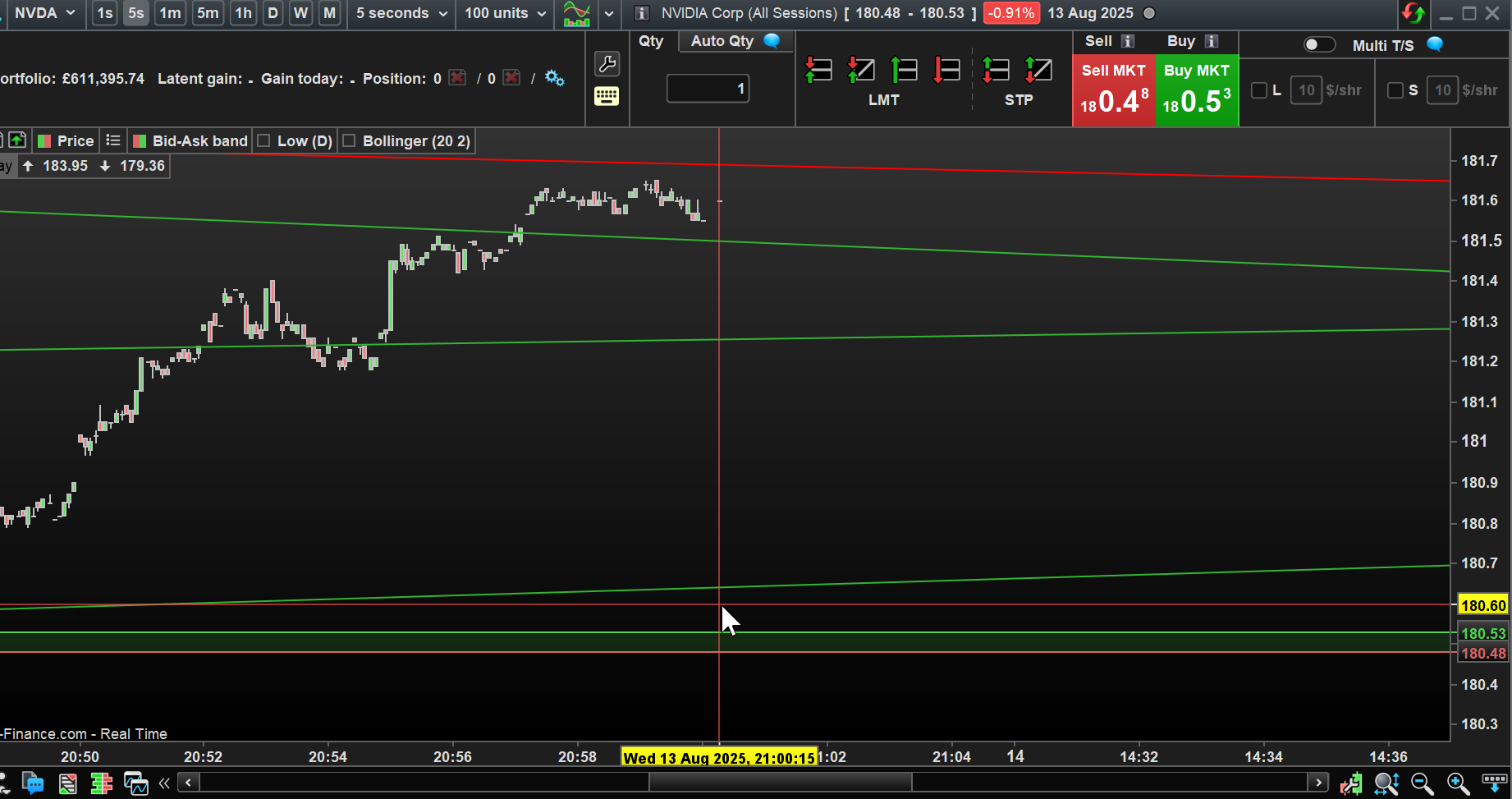 See atached and current Time (on 5 sec TF) at ‘cursor cross hairs’ … price is moving on my IG Platform (for NVIDIA All Sessions DFB)