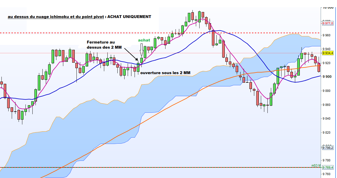 si on est au dessus du nuage ichimoku et du point pivot journalier :