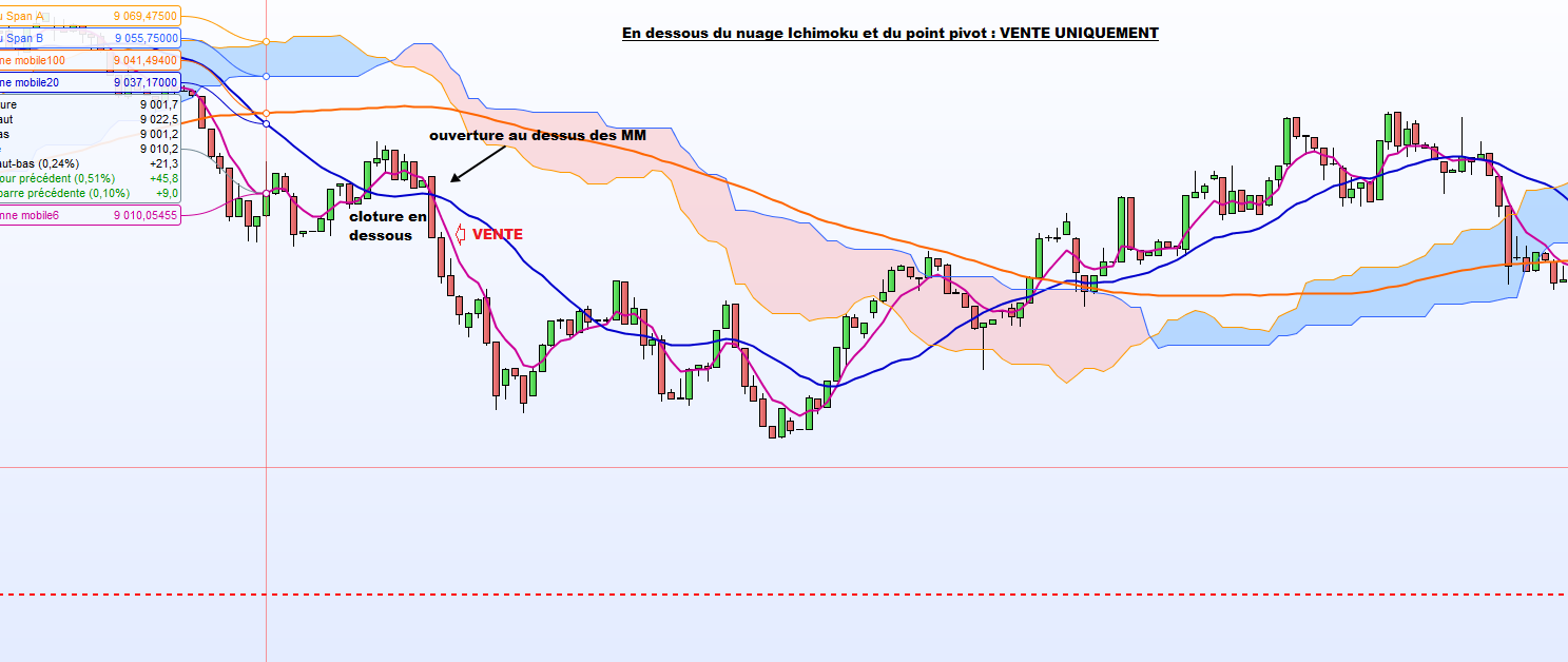 si on est en dessous du nuage ichimoku et du point pivot journalier :