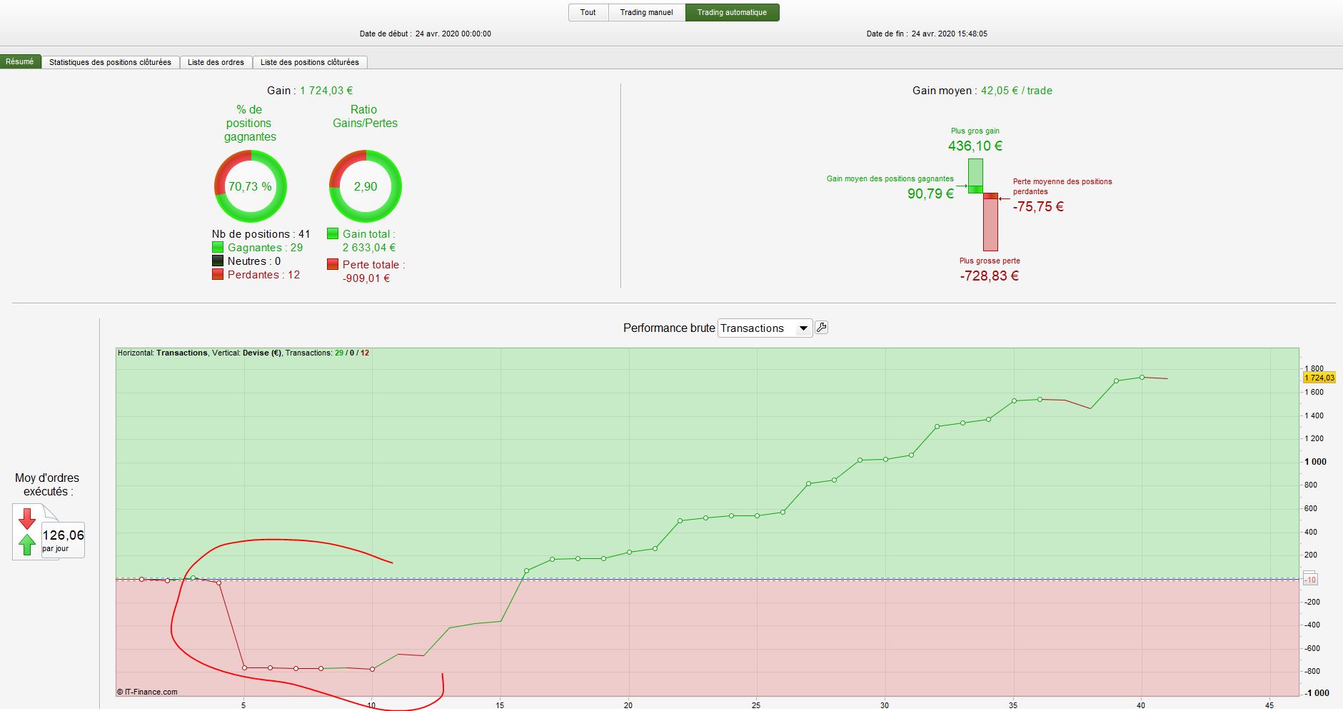 bon, petite truc que je dois régler, un des algos pendant les bougies daily qui deviennent indécises durant la journée, l’algo fait systématique 3 à 4 pertes puis de nouveau gain… faut encore des trades dans le mois pour confirmer ce biais.. … sinon je vais gérer ca simplement en diminuant le pos size dès qu’il commence à perdre