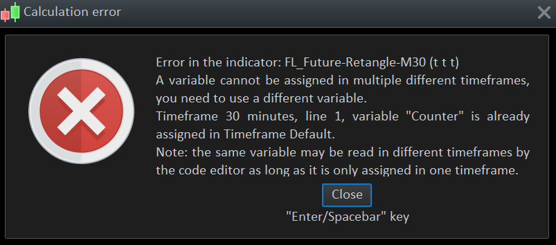 Well, I did not get anything plotted on the chart. There is an error of multiple assignment of the “counter” variable through different timeframes (which is not possible), so you have to change it in one of the timeframe (because I don’t think they are related to each other, you are using it in your loop).