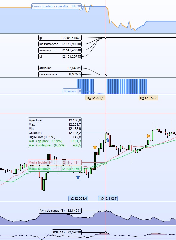Scusatemi se torno sull’argomento, ma continua a non tornarmi la programmazione con la realtà (simulata); ho sbagliato a programmare lo SL? perchè il sistema mi esce a 12160,7 (verificarsi di un’altra condizione) pur avendo impostato lo stoploss a 12133 (low-corsaminima) toccandol poche barre dopo ?