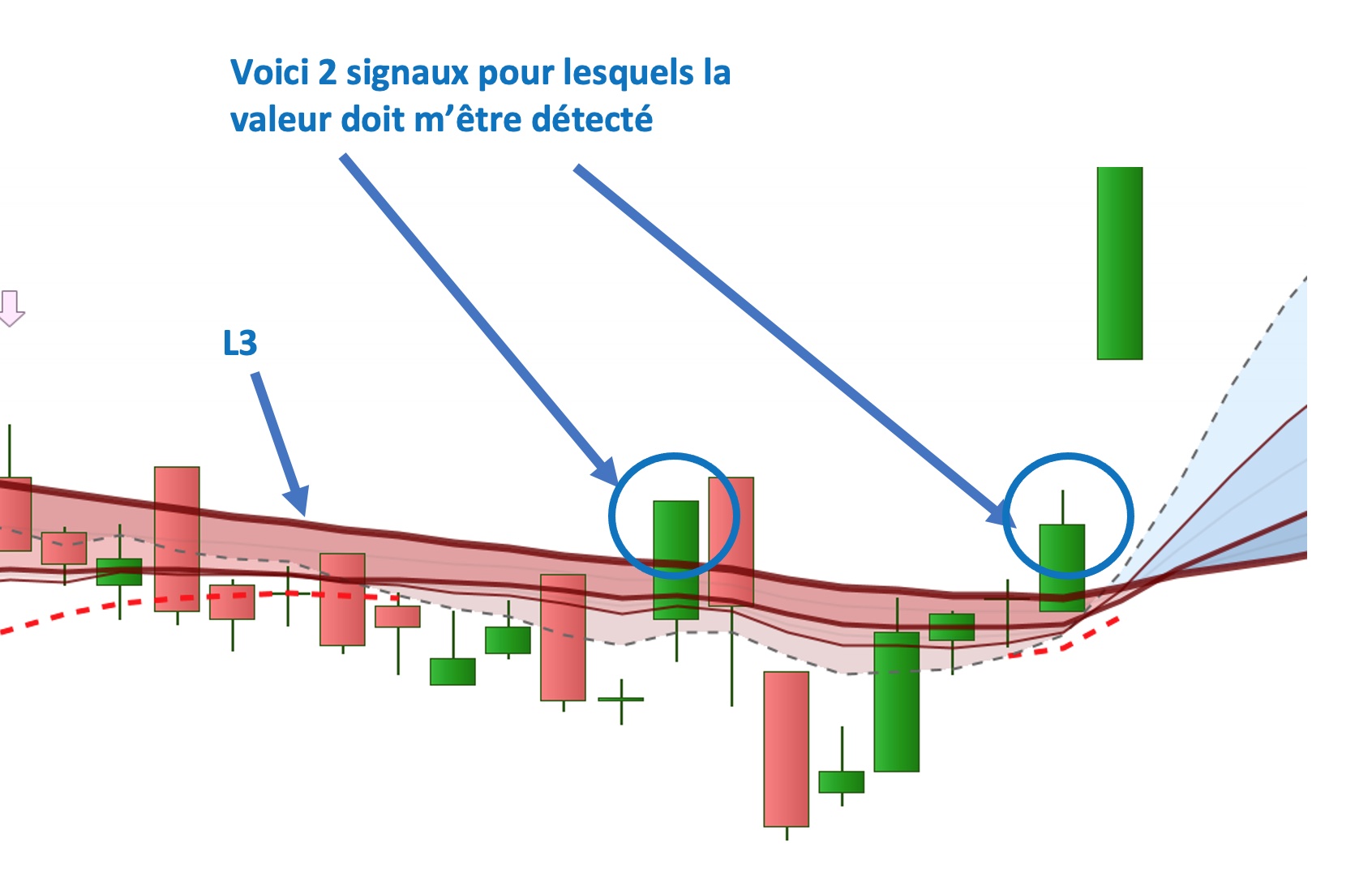 en fait dans la notion de « première » est pour moi la première bougie qui clôture au dessus de L3 après au minimum 1 bougie précédente ayant clôturée en dessous de L3 .