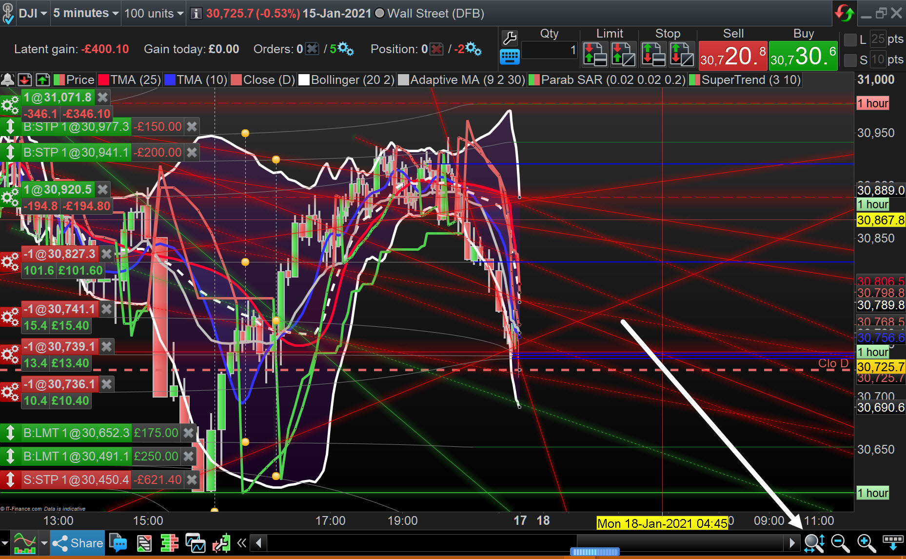 Comment parametrer Prorealtime pour que le prix soit visible automatoquement lors de fortes hausses ou fortes baisses
