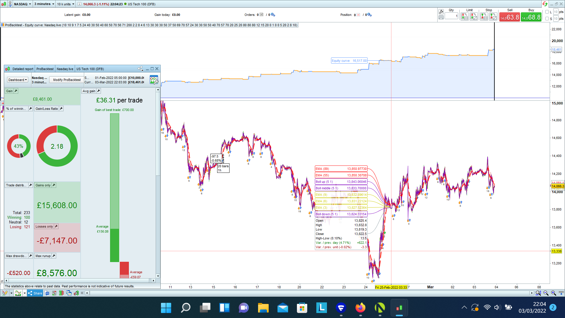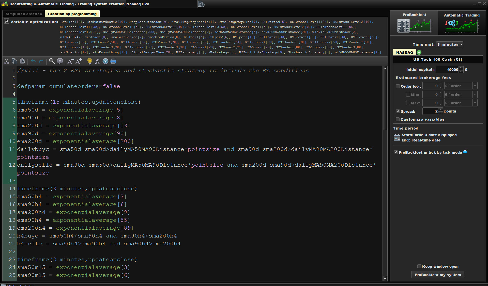 I only ever use the probacktest my system button in the code modification box. But if I open the chart up fresh the backtest will automatically load and produce a similar set of results to the one that lost. I analysed this and I didn’t think it was showing trades taken in line with the strategy. I would then prepare a fresh backtest and it would produce the winning set of results. I have also tested about 10 different parameters also on Wall Street indices and produced winning results. So I didn’t think it was an issue with the strategy it’s self.