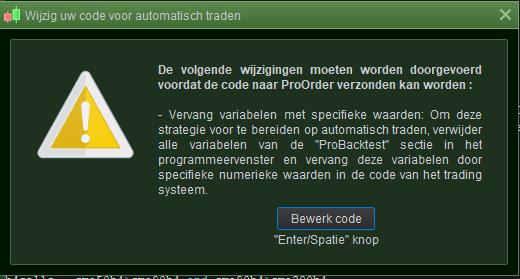 All the parameters to the Strategy (yes, it’s “parameters” now) are set like this with ONCE statements. And it is here where something will go bananas, already because this message (2nd attachment) appears. Jos will be doing similar (though possibly (??) not with ONCE statements but normal assignments (LotSize = 10)) and now the Strategy won’t work because the virtual ONCE’s will not be there and a variable may accumulate instead of starting at its initial value at each call when the 3 minute bar is closed.