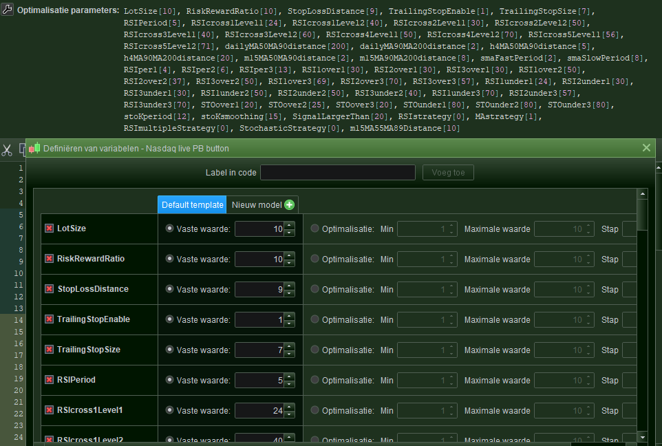 When using the button for Preparing the Strategy for AutoTrading, we receive the message in the 2nd attachment, and it tells us to replace the Optimisation Variables with direct assignments in the code. And well, I can’t be 100% sure yet, but it seems to go wrong there. Regarding this, the message should not be there in the first place, that is, not that I know of because PRT will replace them with ONCE assignment in “my” normal situation. So what I am saying is that what you see in the 3rd attachment is a perfectly normal situation to exist, even meant to fill (change) the parameters to the Strategy at handing the Strategy to the AutoTrading system. Thus, I could change LotSize to 15 when I hand it to Autotrading. PRT will make this of it in the top of the code :