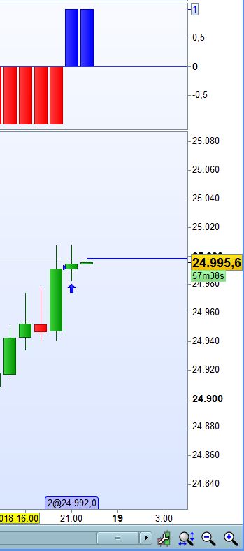 Allego un immagine, dove si vede benissimo che l’ultima barra è appena iniziata(57min rimasti), in più si vede che il BUY è sull’open della barra precedente, ma la cosa strana è che tutto quanto quello che si vede nell’immagine è APPARSO NEL GRAFICO come l’ultima barra ha avuto inizio.