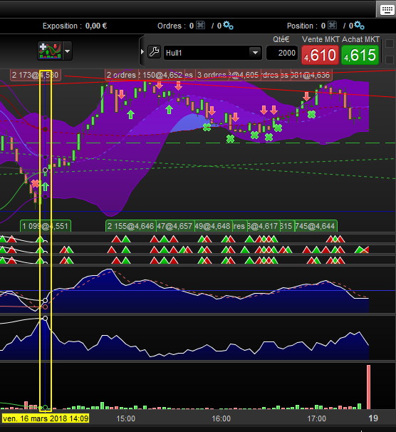 Je l’ai testé sur Peugeot et Vallourec ce jour en time frame 3minutes. J’ai limité le trade max à 5500E dans Pro-order
