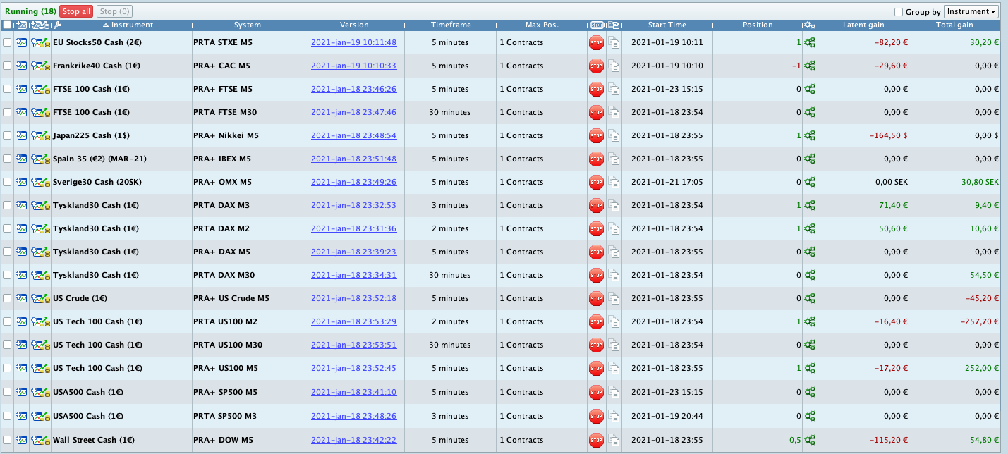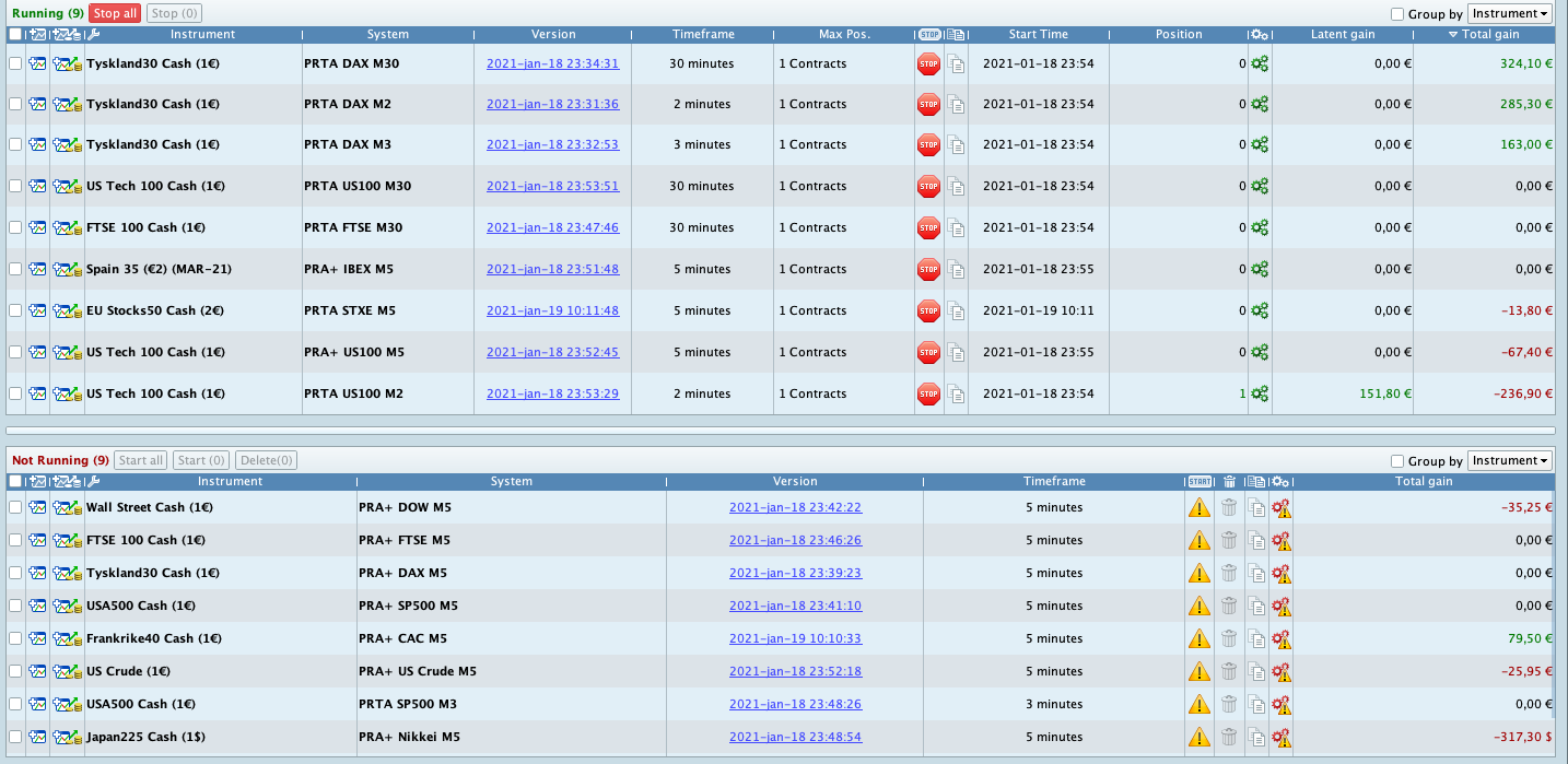 Based on the start time of your algos I can conclude that you missed a winning trades on PRA+ FTSE M5, PRA+ SP500 M5, PRA+ IBEX M5, PRA+ US500 M5, PRA+ IBEX M5 and PRTA SP500 M3.