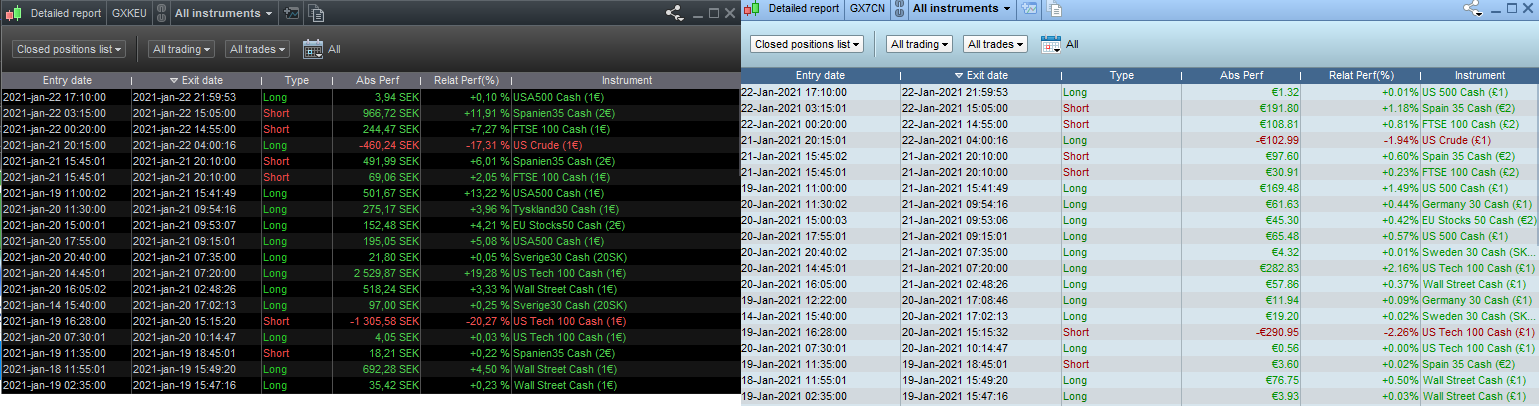 In the attached images you can see all trades since the free trial start on January 18th until today on two different live accounts (our own and a customer accont).