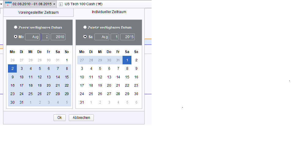 I am also unable to select 1-Aug-2010 for DAX M2 (for example). I have premium version.