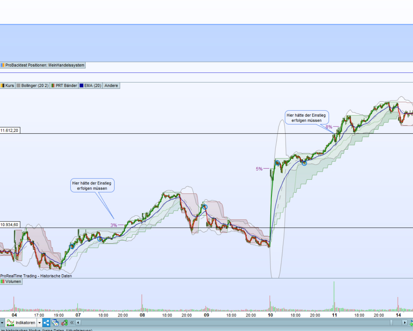 Daraufhin habe ich Ihren Code direkt in ProBacktest kopiert. Hier funktioniert zwar dieser Einstieg, aber auch nicht regelkonform. Bzw. werden hier auch Positionen eingegangen, wo der Kurs den Average gar nicht kreuzt.
