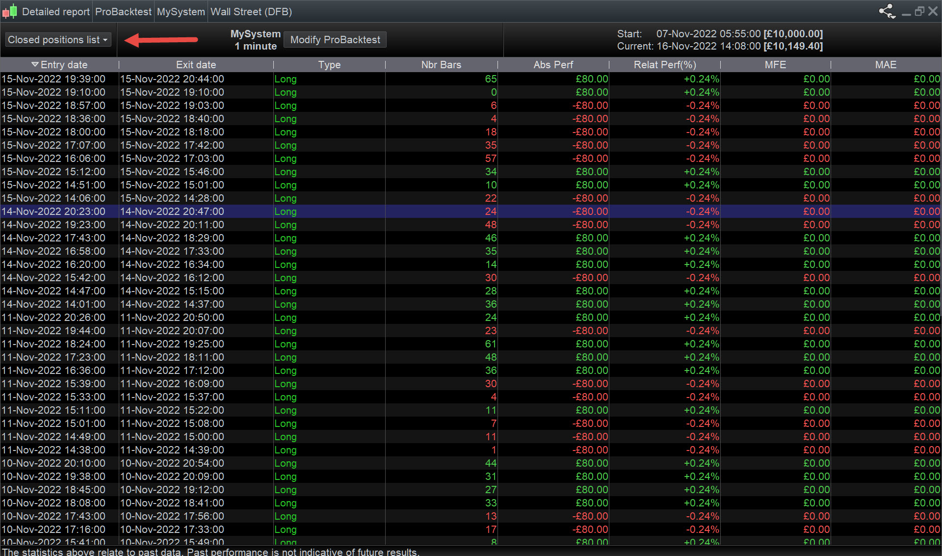 statistics of closed trades all read zero My chart is the Nasdaq 100 1 min and 2 mins