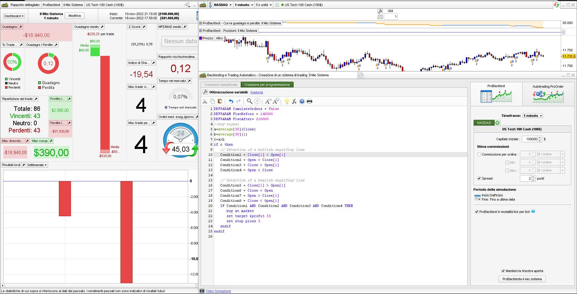 As you can see from the attached pic, your first code entered quite a lot of tradesover 5K units of 1-minute TF on Nasdaq 100.
