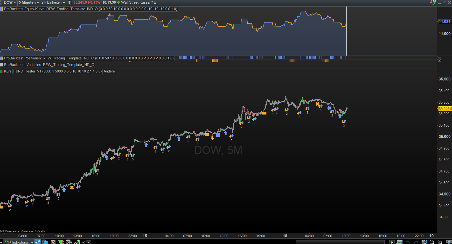 Um ProBacktest, bzw. solche Abweichungen zu überwachen, habe ich mir ein einfaches Testtool gebastelt, von daher bitte nicht über den Chart wundern.
