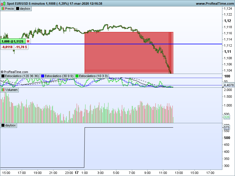 Aprovechando que PRT11 permite modificar el color de los rectangulos, con este codigo quería dibujar sobre un grafico de m5 algo tan sencillo como una especie de vela grande diaria ( rectangulo rojo bajista y verde alcista ) desde la apertura hasta la ultima vela en m5 actualizado en tiempo real que me diera el “sentimiento” del mercado, pero parece que no es posible porque cada 5 minutos se dibuja un rectangulo diferente sobreimpuesto al anterior y al final queda feo. Seria bueno que PRT dieran la opción de borrar objetos en el grafico, algo parecido a lo que hace MT4…