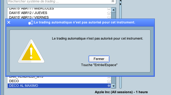Hello I have a problem, when I try to activate an automatic system in stocks (apple,amazon etc..) the system does not allow it to me, nevertheless I already have automatic systems active in indices and forex.