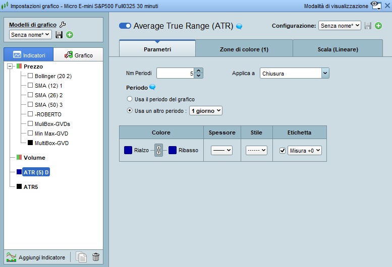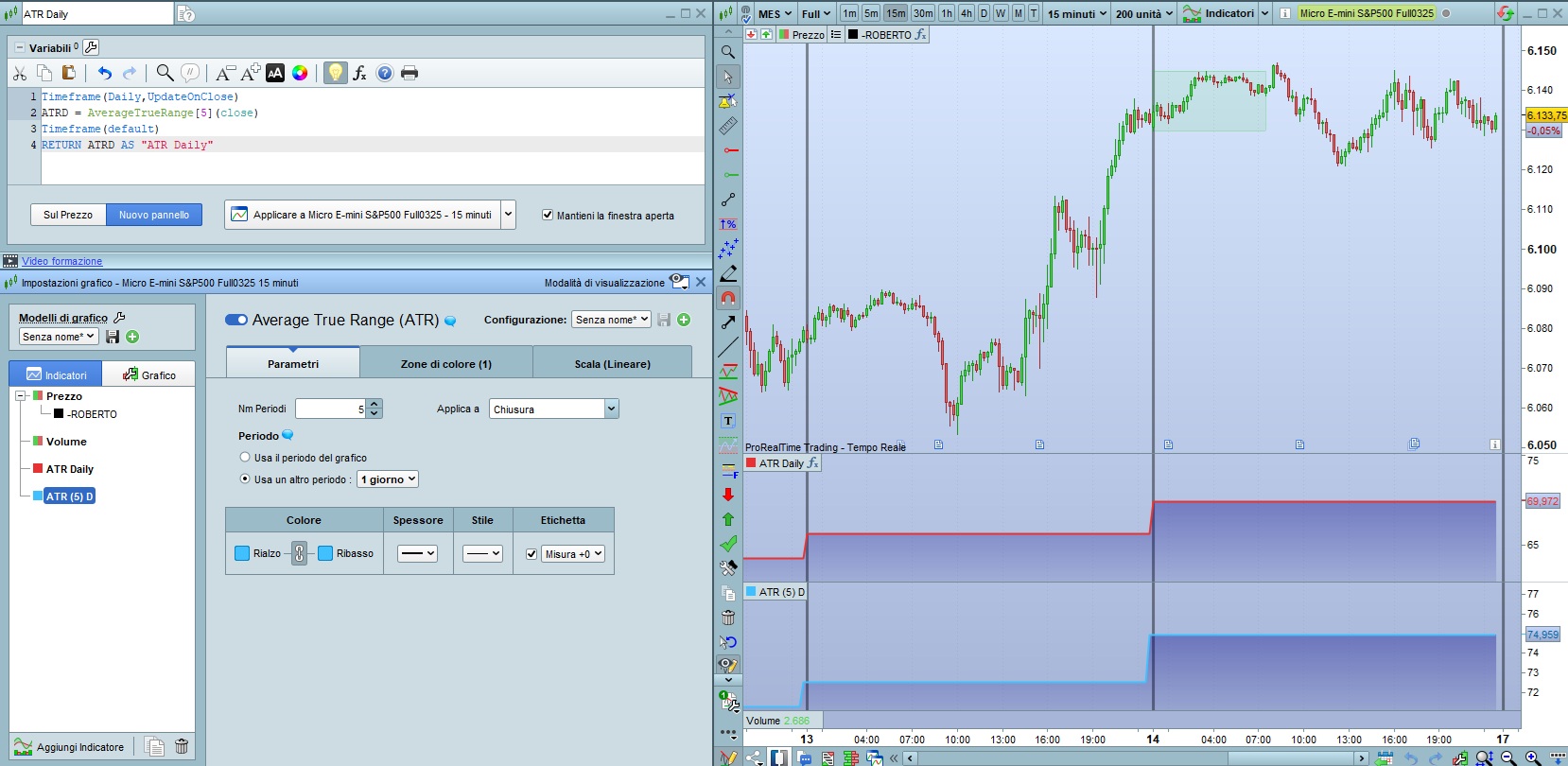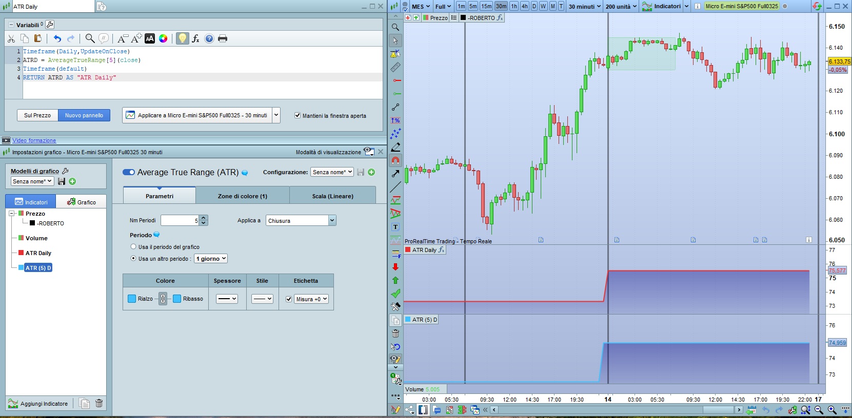 L’obbiettivo è sapere il valore dell’ATR a 5 periodi “giorno” da mettere nel codice per un successivo calcolo.