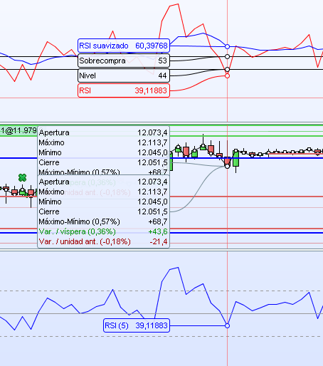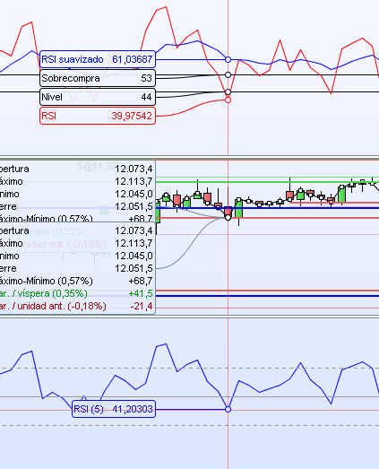 Gracias Nicolas, te adjunto otro ejemplo, de todas formas el RSI[14](close) hace referencia al Relative strength Index (es decir, indicie de fuerza relativa) por lo que o estoy muy equivocado o es el mismo indicador.