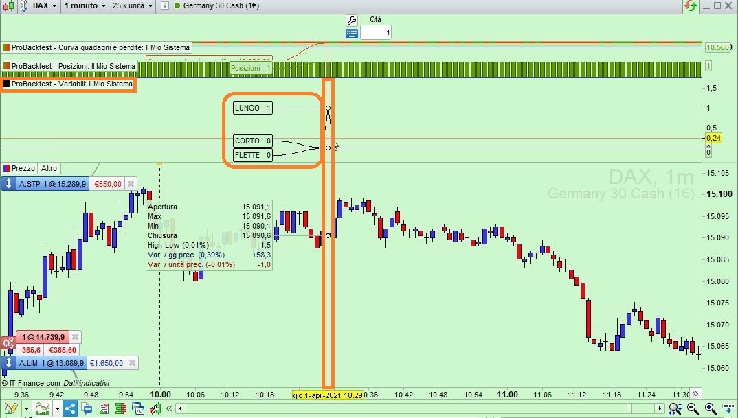 vedrai, nella finestra delle variabili di ProBackTest, i valori che queste variabili hanno barra per barra, quando tici fermi sopra col mouse.