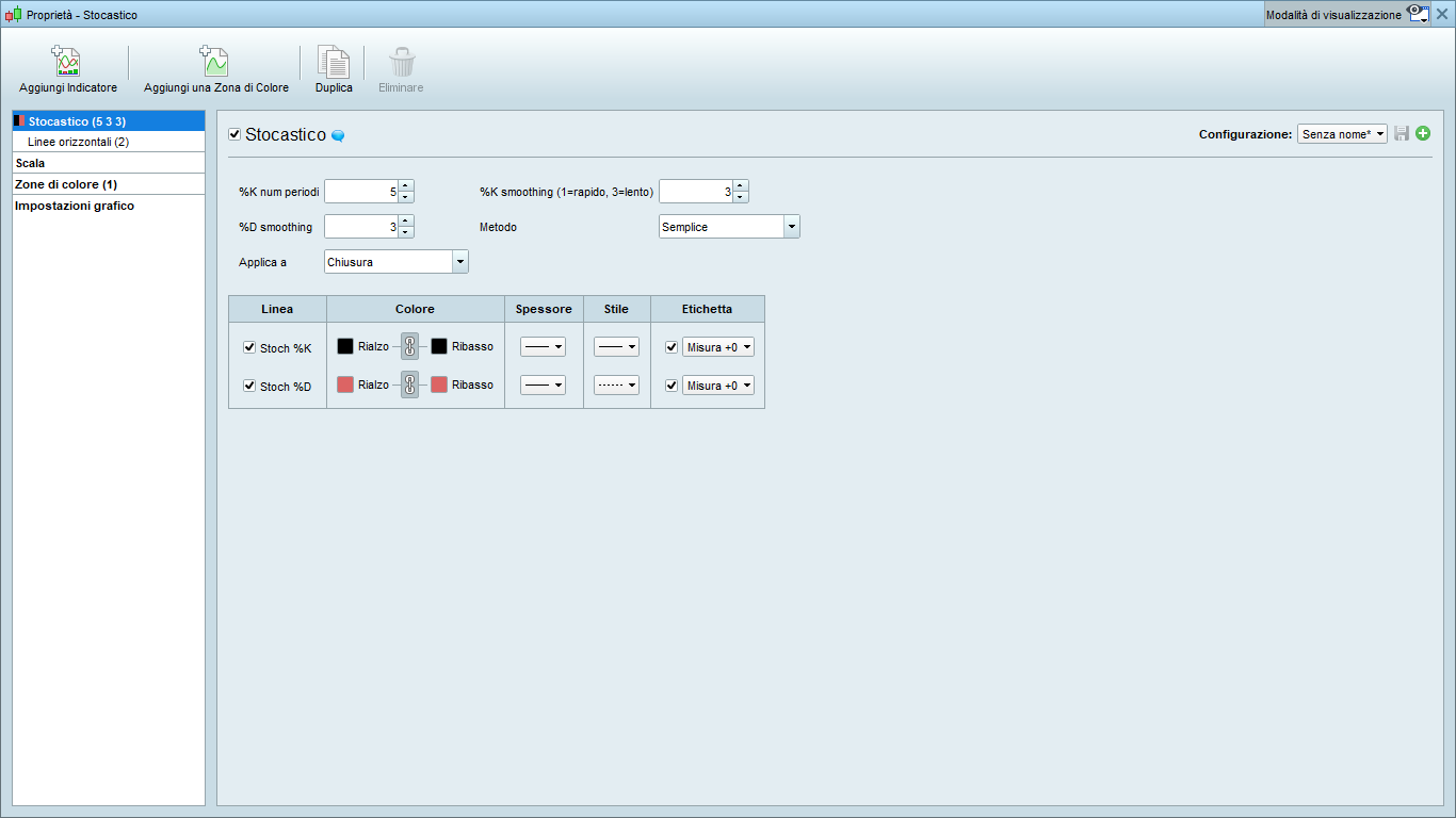 come devo procedere per impostarlo considerando anche che vorrei che raggiunto l’ipervenduto/comprato il segnale ci sia quando c’è l’incrocio fra %k e %D