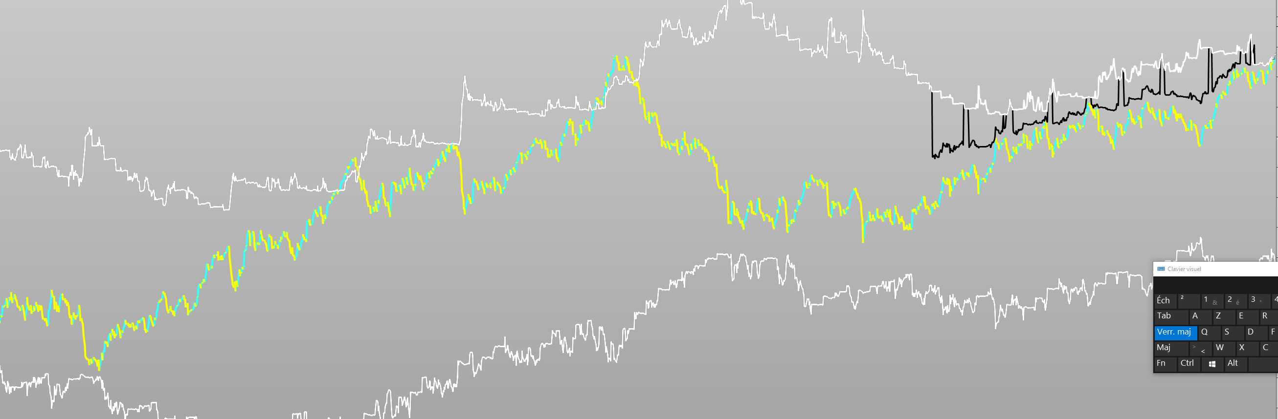 j’ai joint des screenshot car c’est pas vraiment descriptible je l’ai mis en noir et ai rajouter un autre en blanc que j’ai réapliquer sur le graph quand le premier déconne pour montrer la valeur qu’il devrait normalement montrer il y a parfois jusqu’a 10 ticks de différences