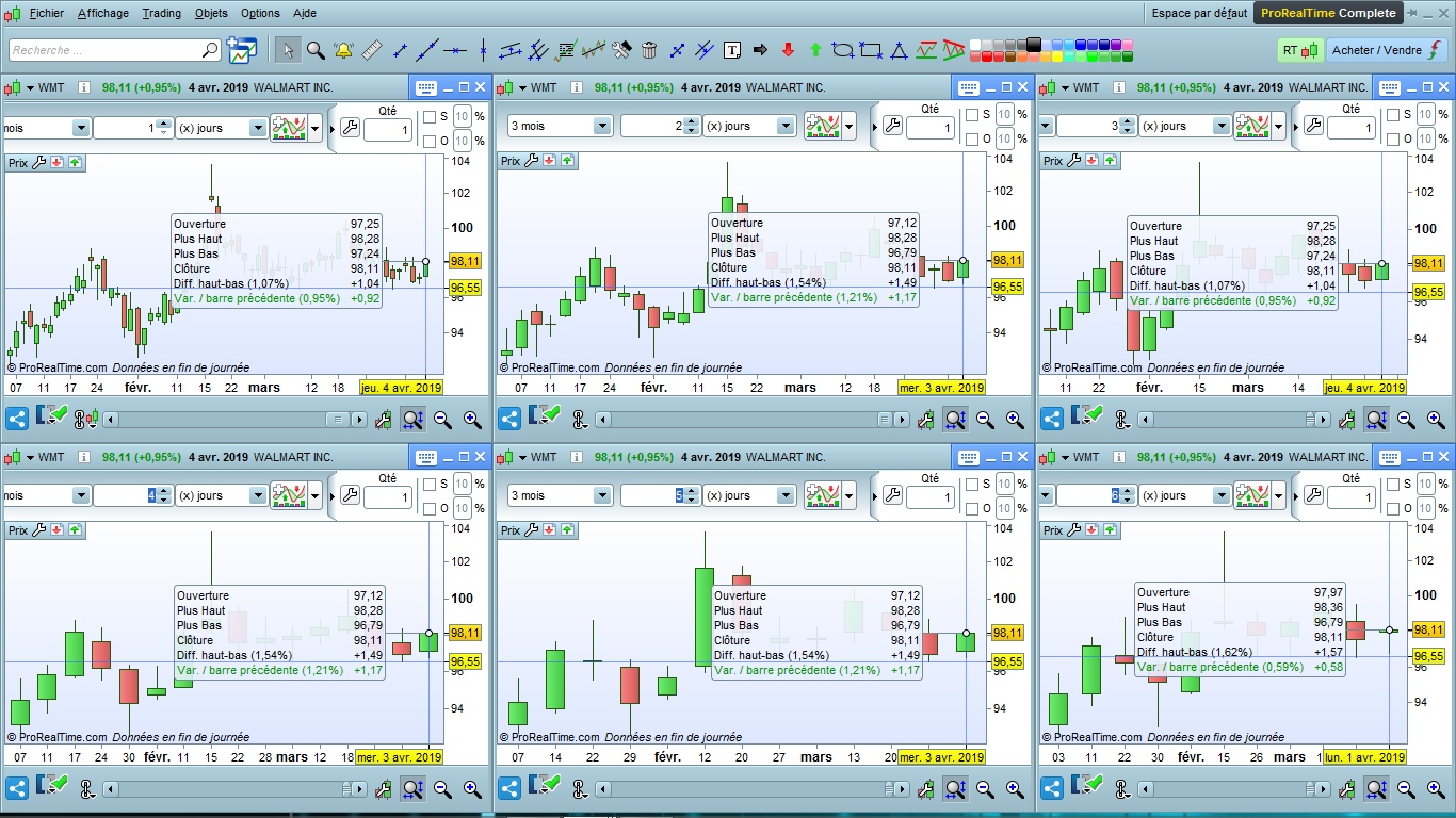 Voici par exemple WMT avec plusieurs UT (x) jours : vous constaterez que le curseur jaune indique des dates incohérentes.