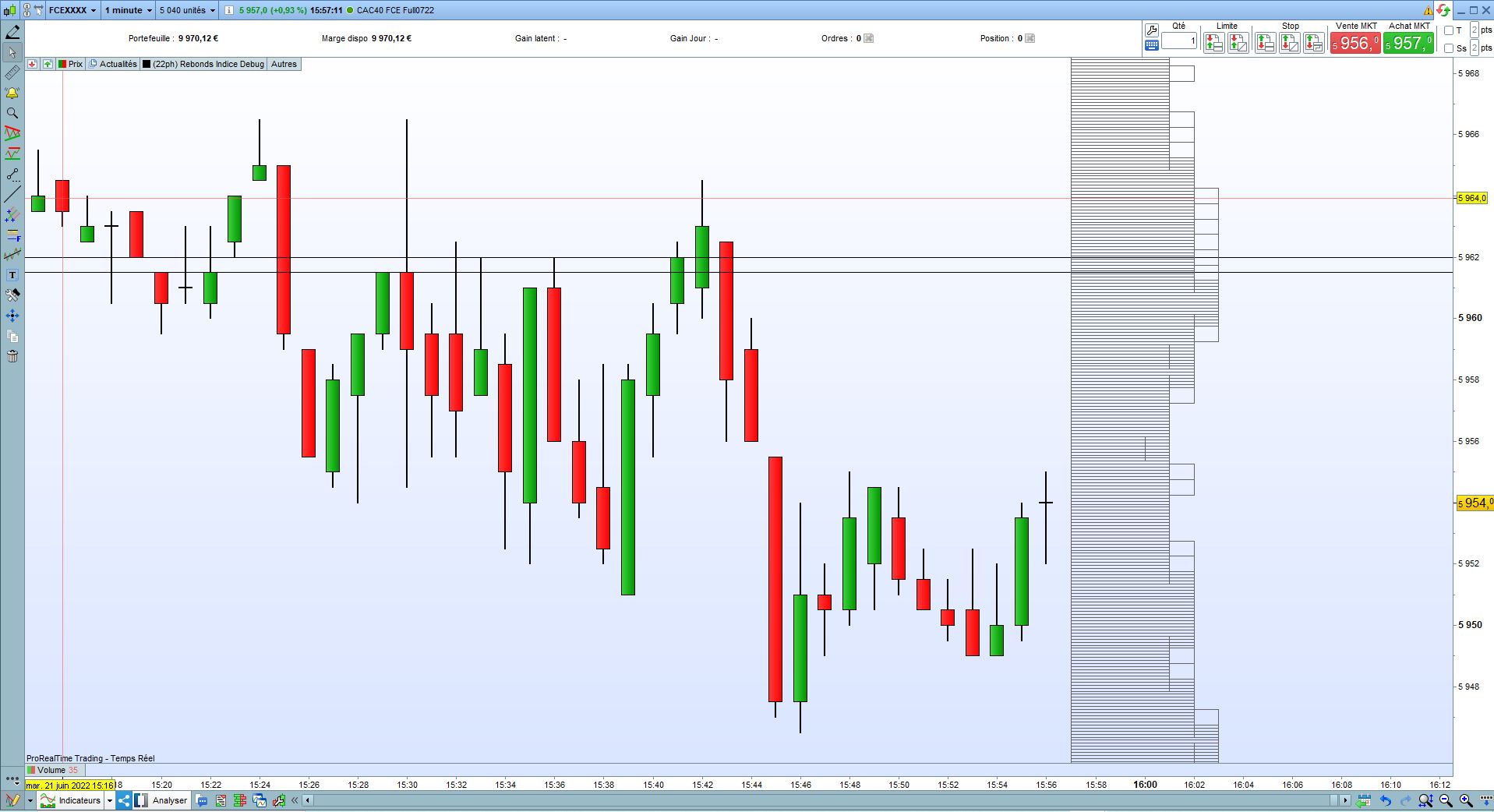 // Objectif : représenter la répartition des cours (sans tenir compte des volumes) par un histogramme vertical (à droite des cours)