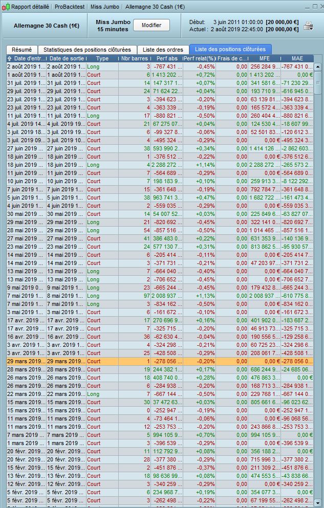 Ce problème n’existait pas en juin où je vous pouvais backtester du 4 avril 2011 (j’enregistre tous mes baccktests sur Excel) au 4 juin 2019 sans aucune erreur, sans inversion des trades, sans ajout de positions indues.