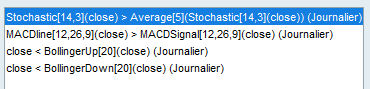 Dans la dernière condition, le prix doit être > à la boll inférieur et non < .