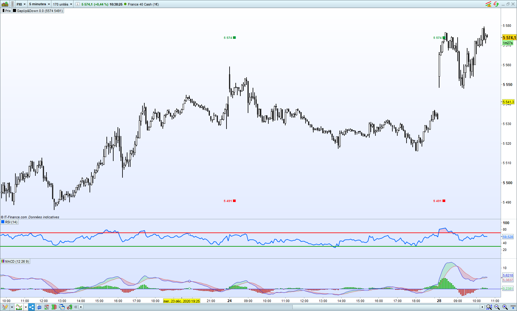 //s'affiche à la clôture du 1er chandelier sur Graph 5min du jour