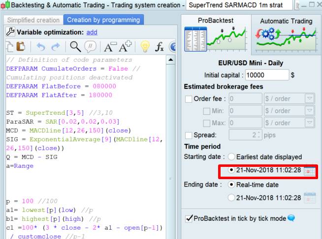 Exemple : je teste une stratégie ayant pour date début :”Première date affichée”.
