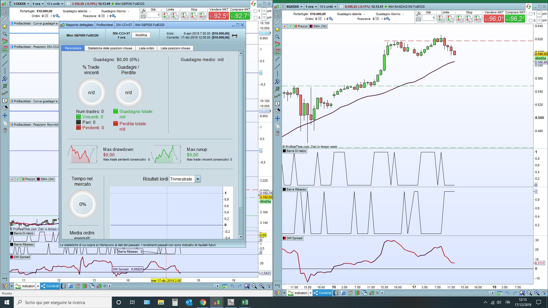 Salve, l’errore lo da su entrambi gli strumenti che h provato Emininasdq e emini sp500. Prima mi diceva compaiva la finestra di errore(come ho scritto nel posto precedente) adsso lo stesso sistema mi da come risutlato 0 operazioni e ripeto anche con un sistema con 1 sola media m. ora ho provato con questo: Grazie.