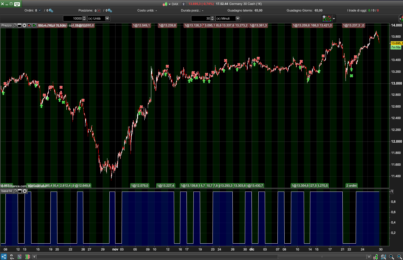 ciao Roberto grazie per la risposta, comunque come vedi sono tutti e due su barre da 30 minuti, indicatore funziona su qualsiasi unita di tempo sulla versione vecchia di PRT invece su quella nuova non va su nessuna. volevo sapere se qualcuno ha riscontrato gli stessi problemi, forse dovrei contattare PRT direttamente?