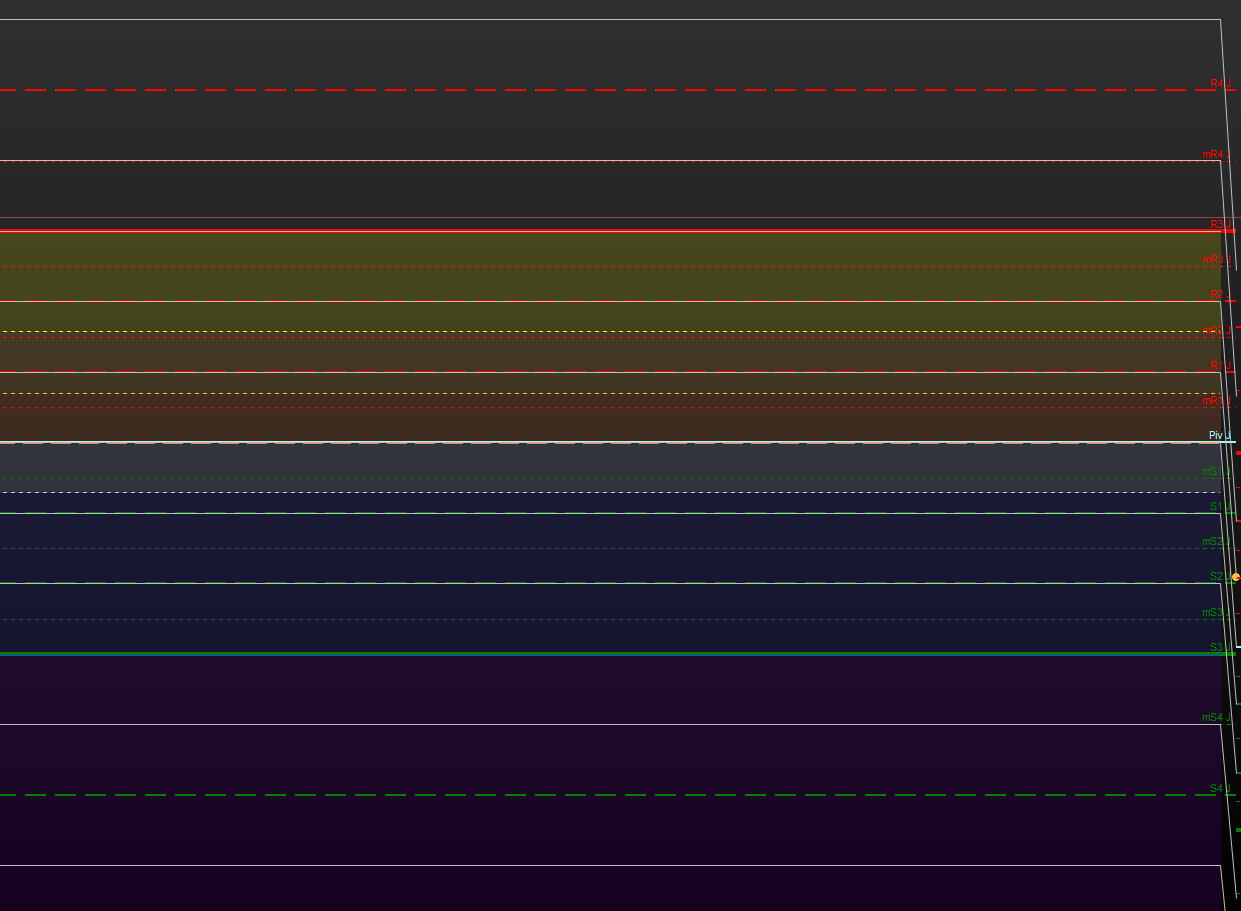 Ok, donc même en supposant que ce soit pour appliquer sur un graphe action US avec horaires 15h30-22h (et non pas sur un graphe cfd H24 dont il faudrait d’abord séparer les données 15h30-22h des autres données du flux H24), si je comprends bien ce code de la library ne donne pas les R3, S3 voulus… Est-ce que tu connais la formule que tu utilises pour R3,S3 ? Ce code de la library partait du pivot, mais il existe un calcul S3 à partir du low et un calcul de R3 à partir du high aussi, est-ce que ce serait plutôt cette façon de calculer que tu utilises pour tes R3,S3 et qui expliquerait le décalage observé?