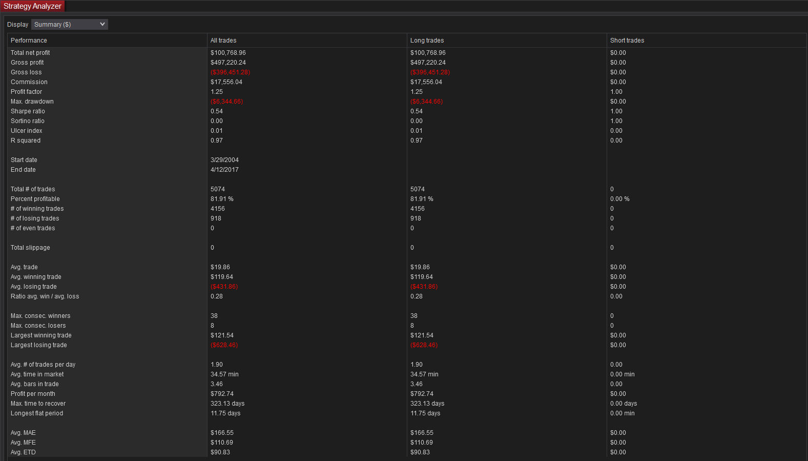 I know Monte Carlo is already planned. Ok for Sharpe Ratio (already in my own wish list), any other things? I’d like to get the average MAE/MFE of all trades, the profit in points, the duration of winning trades and losing trades also (and yes thank you, I had a great sunny week-end 😉 )