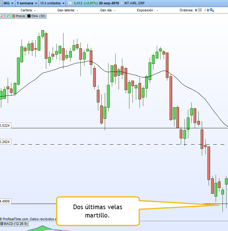 El objetivo final es filtrar aquellas acciones cuyas dos últimas velas han sido velas martillo en gráfico semanal.