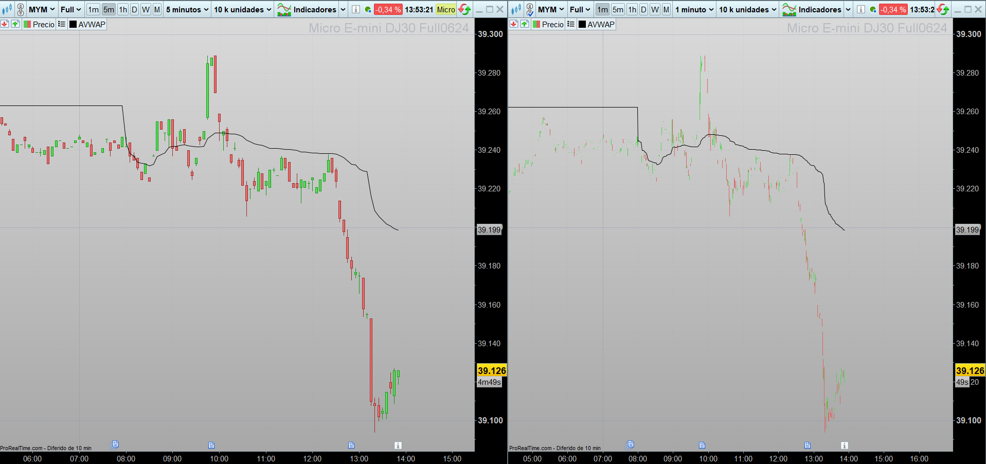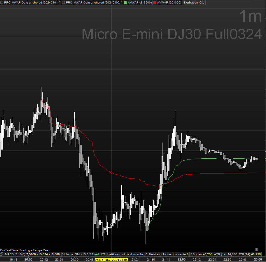 J’essaye de programmer un indicateur VWAP en intraday en saisissant le moment (format HHMMSS). Il dessine bien la courbe quand je suis en 1 min en revanche, il la dessine mal quand je suis sur une unité de temps différente. Je me suis inspiré de l’anchored vwwap de Nicolas qui marche en jour, mais visiblement j’ai du mal à le transposer à de l’intraday. J’ai mis en PJ la représentation en 1 mn et la représentation en 5 mn en exemple. Si quelqu’un peut m’aider. Merci d’avance