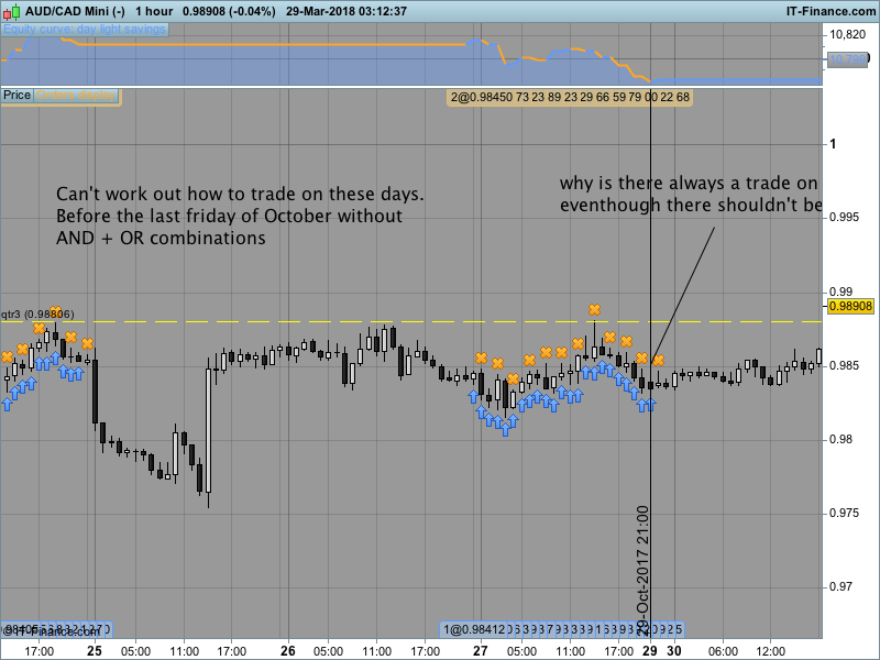 Also, if you use Result it the graph doesn’t show a trade on the Sunday but if you use BUY and SELL for some reason it will execute a trade on Sunday in October?