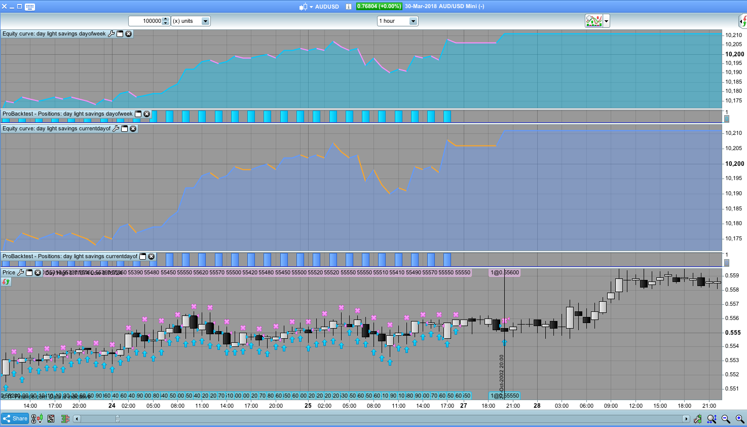 Also, when you look at the candles and the spreadsheet sometimes trades close every hour but other times they do not and they close on the following hour with 2 units closing/exiting.