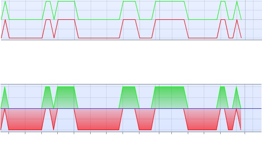 Faire en sorte de programmer de façon à ce qu’il apparaisse comme en bas de la capture d’écran, à savoir avec une ligne horizontale zéro, et avec le remplissage que j’ai défini manuellement.