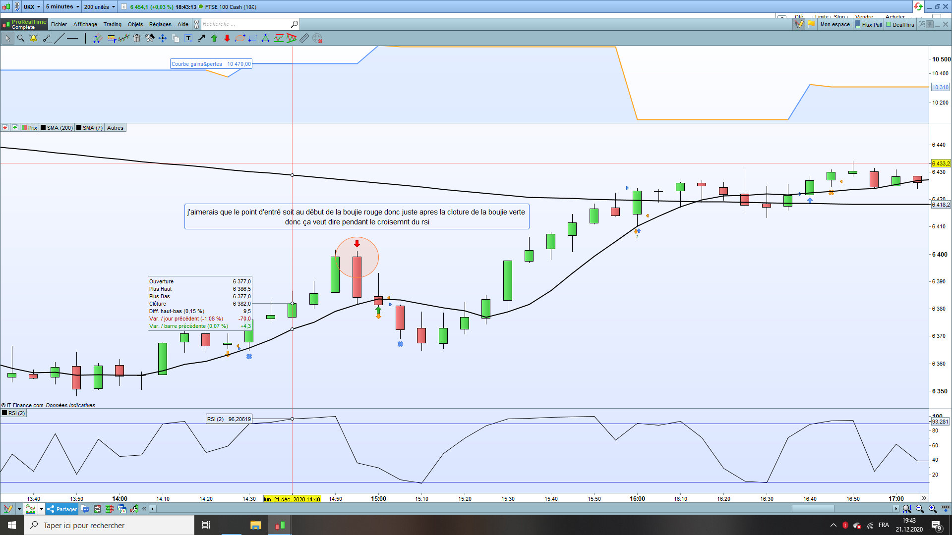 Le code correspond à ce que vous avez demandé. Sur l’image que vous avez posté, vous souhaitez prendre une position mais en ne respectant pas l’une de vos conditions initiale. Car vous souhaitez prendre une position de vente à découvert alors que le cours est supérieur à la moyenne mobile.