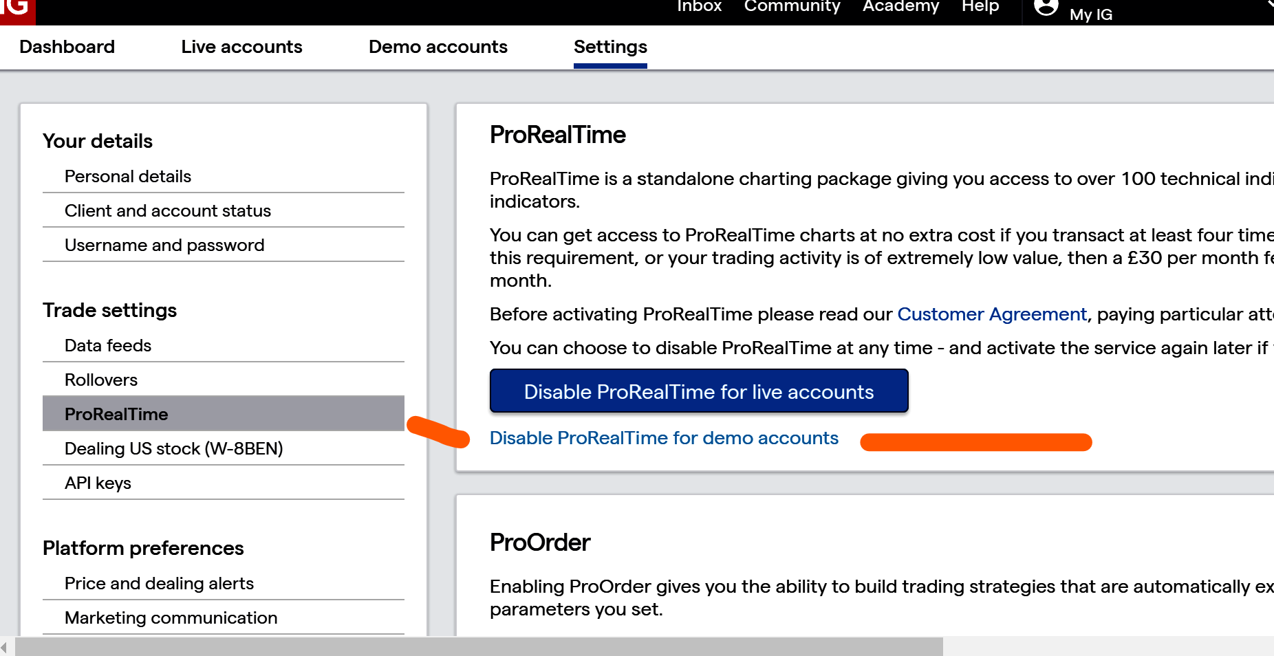 This drives me crazy, specially that it does work (on same computer) on the same IG account but for CFD, and also on a different IG SB account (premium) .