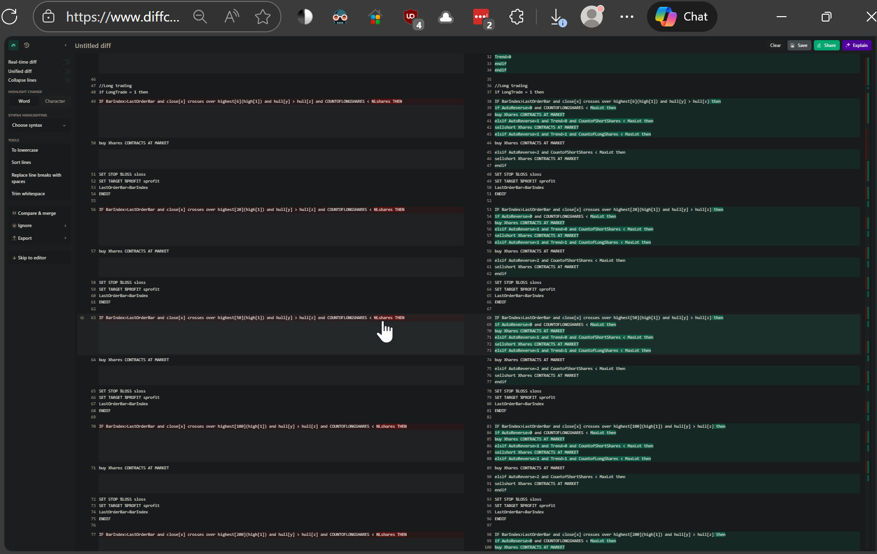 Inserisci entrambe le versioni del codice nel diffchecker al link qui sotto… per essere sicuro al 100% che i due codici siano identici.